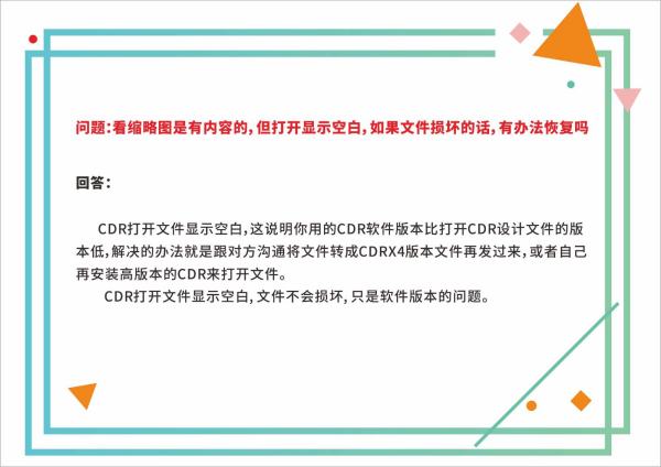 CDR打开文件显示空白, 文件不会损坏, 只是软件版本的问题。
