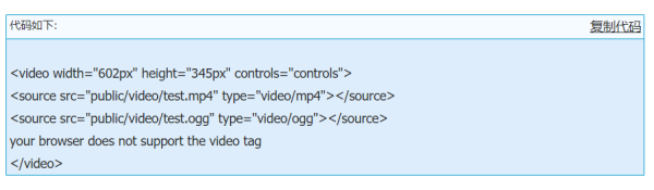 在html中加入视频可以通过以下4个步骤来实现。 第一步:首先下载video.js,百度一下就能找到。 第二步:先把要用到的js\css\swf都加载到html页面上。 如: 第三步:加入下面的代码:当前,video 元素支持三种视频格式:
