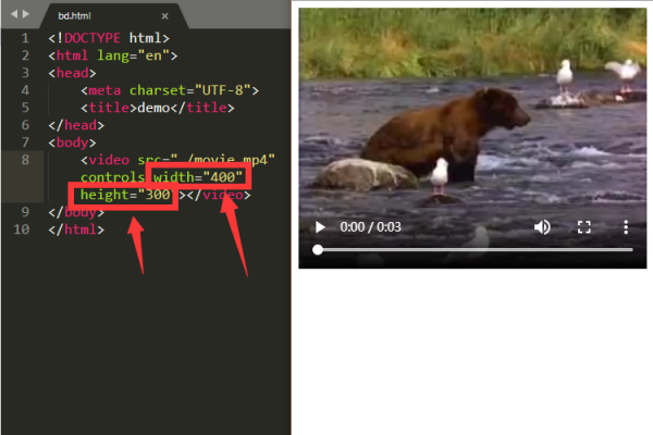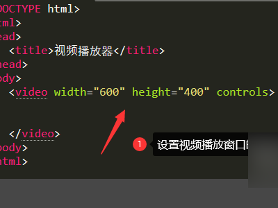 4、然后设置视频窗口的大小,在video标签添加width和height属性。