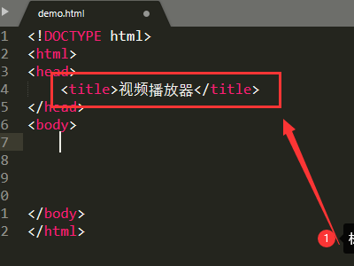 2、然后在title标签之间写上标题的名称,这里输入视频播放器。
