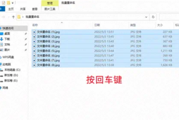 1、打开你要批量重命名的照片,确保他们在一个文件夹。 2、按CTRL+A或者点击菜单栏位的编辑-全选。 3、在全选界面点击鼠标右键--重命名。 4、将全选状态下的一个重命名为你要的字段。 5、命名完后,鼠标点击其它空白地方,文件全部自动完成修改。 6、我们用上面的方法验证一下其它格式的文件-重命名。 7、很快命名成功。相关文章