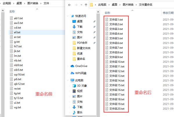 第4步,对比批量重命名前后的文件可以看出,批量重命名后的文件名整齐规范。