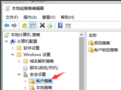 3、在打开的本地组策略编辑器窗口中,依次点击计算机配置 - Windows设置 - 安全设置 - 账户策略 。