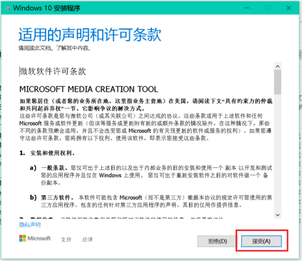 下载工具后,运行工具。再点击“接受”——立即升级这台电脑——下一步,再提示操作就能升级了。