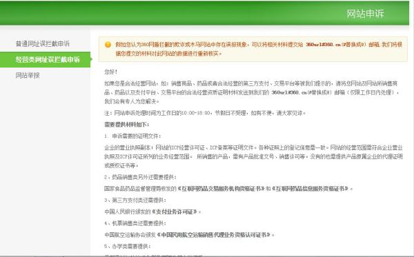 2、向360申诉自己的网站。登录360网站申诉的官网可以看到如果被360的网盾误杀可以向其发邮件进行申诉的,如下图: