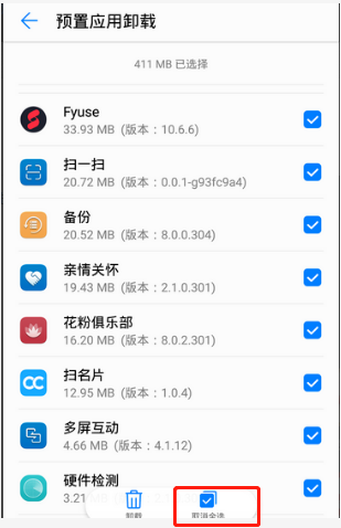 5、然后,勾选想要卸载的预置应用,再点击底部的“卸载”就可以了。