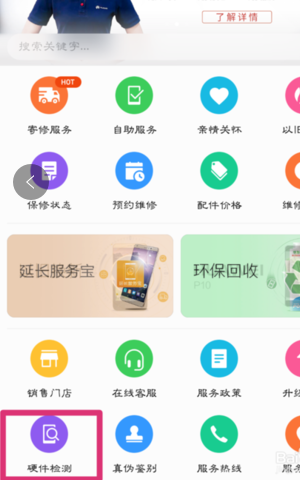 1、进入手机,点击【会员服务】。然后在会员服务内找到【硬件检测】功能键