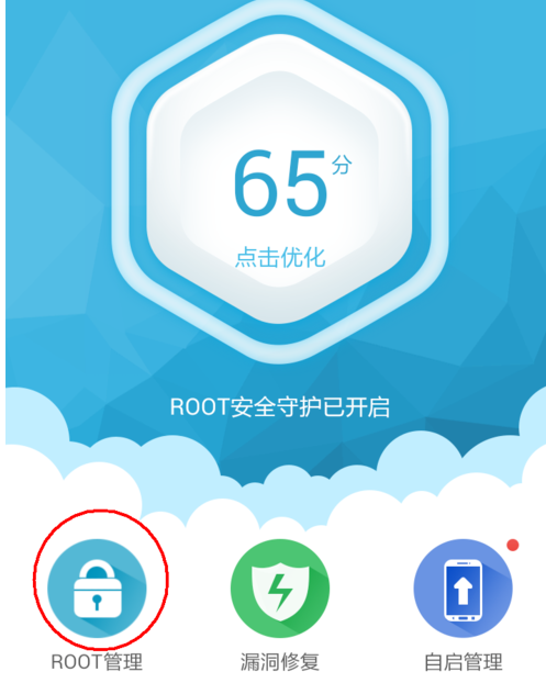 1、首先下载安装手机root软件获取root权限,如下图所示,点击左下角的“root管理”打开。