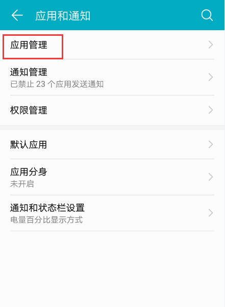 3、点击打开应用和通知,在页面中找到“应用管理”: