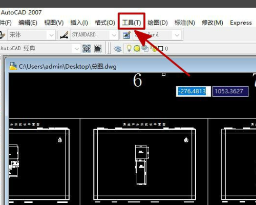 1、首先,打开CAD软件,在功能栏点击”工具“,如图所示。