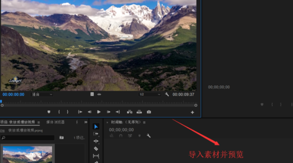 2、执行Ctrl+I快捷键命令,在导入窗口中选择一个需要进行快放与慢放设置的视频素材到PR中,并可以双击视频素材进行预览。