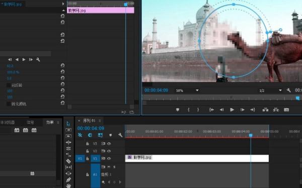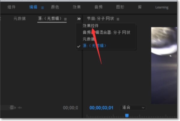 3、点击选中时间轴上的视频,然后点击左上角的向右箭头,选择效果控件。