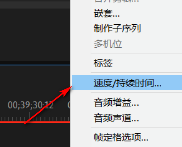 3、然后将如素材拖动到序列当中,选中视频轨道右击,选择【速度/持续时间】。