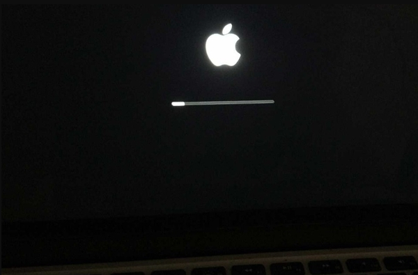 2、看到电脑的屏幕上已经出现了苹果电脑的标志。