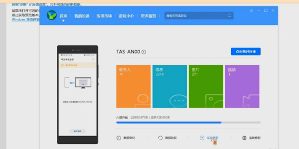 1、点击系统更新,使用华为手机助手连接鸿蒙系统手机后,找到系统更新选项,点击它。