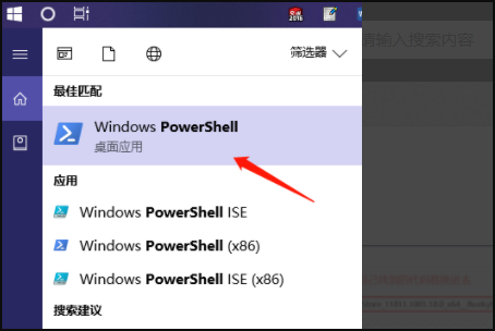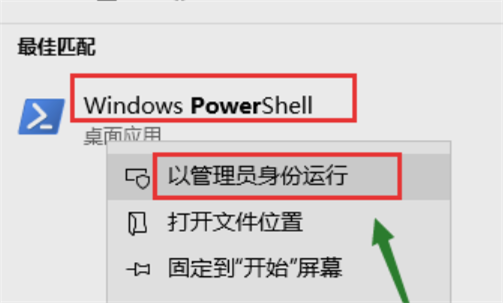 2、在结果中找到widows powershell应用,右键单击widows powershell应用,选择以管理员运行。