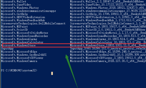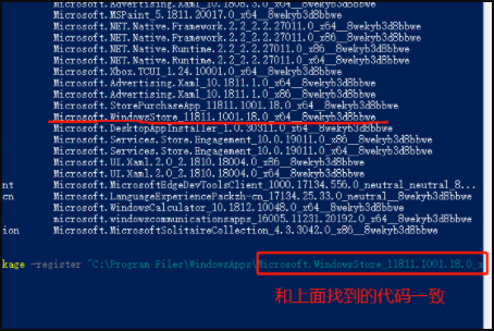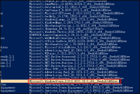4、找到Microsoft.WindowsStore(应用商店)这个应用,然后复制右侧的名称。