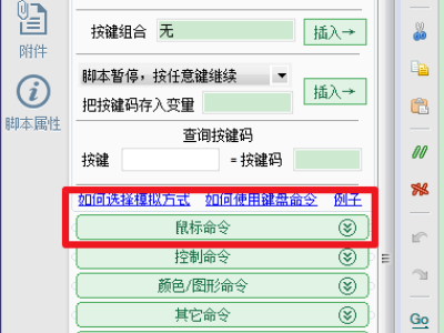 5、然后关闭抓抓,在脚本的编辑界面,点击【鼠标命令】。