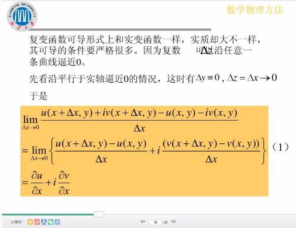 因此在满足可导的条件下,u+iv是f'(z)的一个原函数。因此可以建立柯西-黎曼方程: