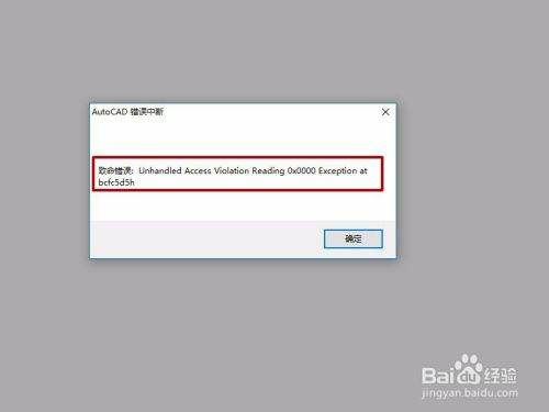 打开CAD,会弹出一个对话框,显示“致命错误”,如下图所示。