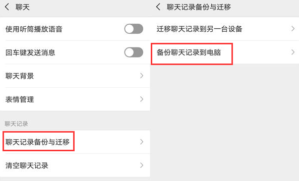 首先,我们打开手机微信,依次点击“我”-“设置”-“聊天”-“聊天记录备份和迁移”,在这里我们可以看到两个选项,分别为“迁移聊天记录到另一台设备”和“备份聊天记录到电脑”,我们选择第二个选项即可。