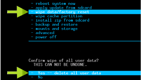 2、用音量键上下翻页,电源键点击确认,进行选择翻页和确认,选择下面的yes.用电源点击确认。清