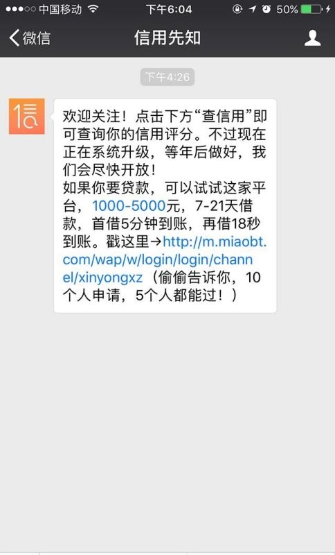 4、查询微信公众号:部分微信公众号会提供贷款服务,用户通过微信公众号申请的网贷,需要通过微信公众账号来查询还款的状态。