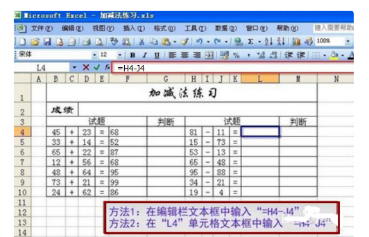 方法2:在"L4“单元格文本框中输入“=H4-J4”