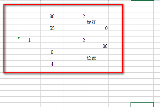 2、可以看到默认的单元格中有数字和字符,如下图所示: