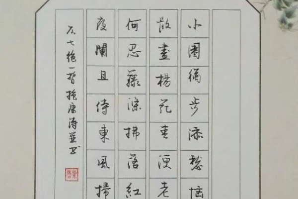 如图这种格式,是专门写七绝或七言(四句)旧体诗的。只要是小方格,各个书体就都可以写,句末一般不加标点符号。