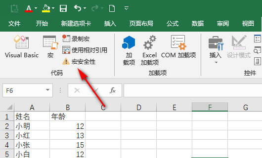 2.进入开发工具后,单击代码选项中的宏security,如下图所示。