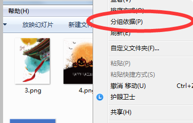 2、然后右键点击文件夹的空白位置,在打开的选项菜单中选择“分组依据”。