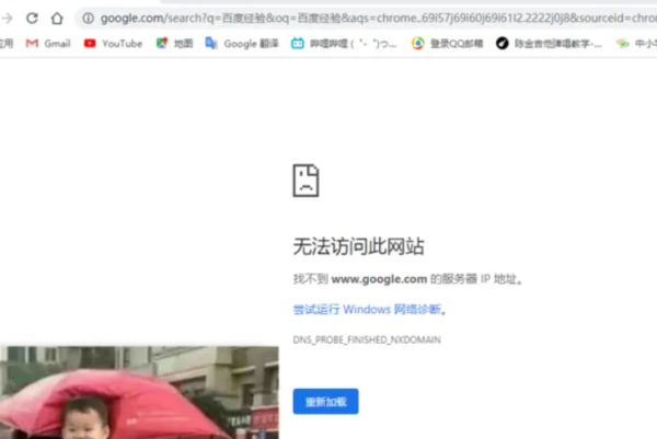 1、打开下载的Chrome浏览器,我们发现不能搜索,一直显示出错。