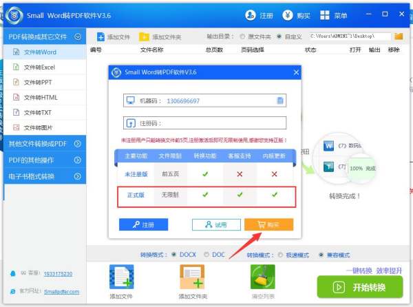 第二步:进入到“PDF转文件”的转换界面中,选择为“PDF转Word”转换选项并将要转换的多个PDF文件添加到转换器内。