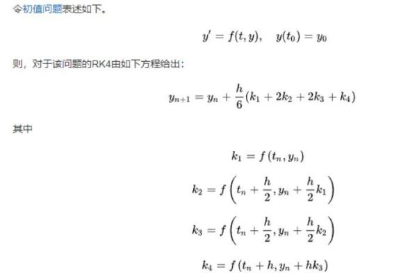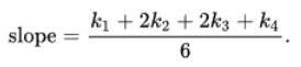 这样,下一个值y(n+1)由现在的值y(n)加上时间间隔(h)和一个估算的斜率的乘积所决定。该斜率是以下斜率的加权平均: