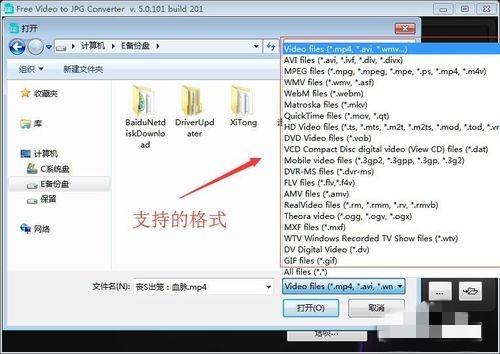 3、这是软件支持的视频格式,如果打开没有看到想要的分解的视频,记得选中展开所有文件。