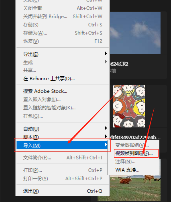 1、启动ps,单击菜单“文件”-》“导入”-》“视频帧到图层”;