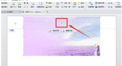 6.此时,可以看到页码在图片上方,既插入了图片,又显示了页码,再根据实际需要,调整图片的大小、位置等即可。