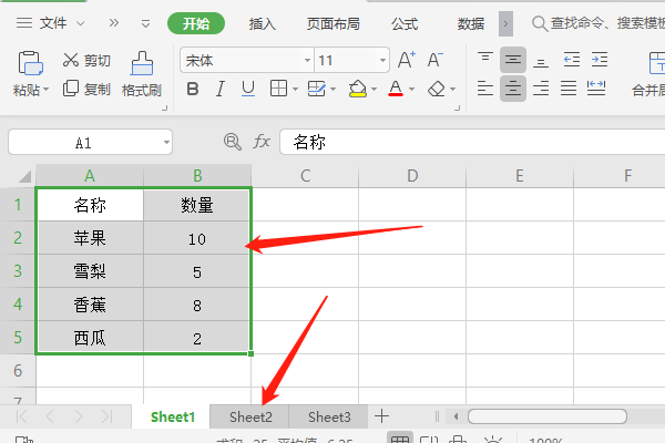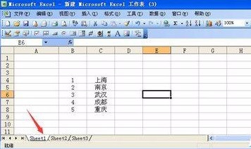 四、粘贴之后,sheet1中的内容复制到sheet2中,如图所示。