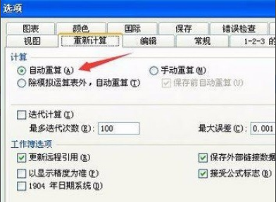 5、当然,因为跨工作表引用,因为数据都是引用其它表的链接,所以选项中的自动重算功能必须打开,要不数据容易出错哟。