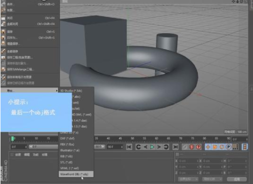 7、接着,我们在弹出的菜单中选择导出【OBJ】;然后,我们选择保存路径,点击【保存】。
