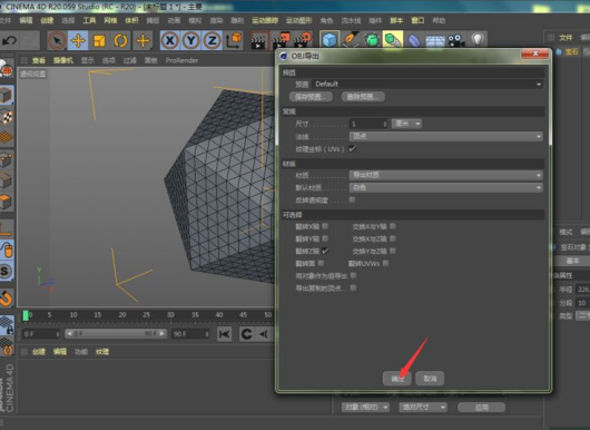 8、最后,我们在弹出的OBJ导出设置窗口中,保持默认参数,点击【确定】。这样一来,我们的C4D已经成功导出了OBJ格式文件。