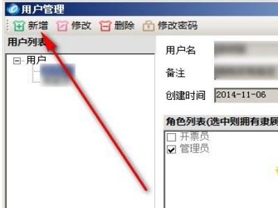 进入用户管理后,页面会弹出当前系统已设置好的所有用户名及相关权限,点击页面上方的新增。