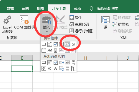1、首先点击工具栏中的“开发工具”选项,点击“插入”中的“列表框”图标。