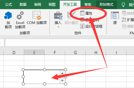 2、然后在表格上画出一个列表框,并点击“属性”按钮。