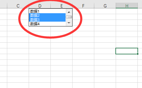 多选功能无法通过设置数据有效性来实现,需要插入“列表框”来实现该功能。