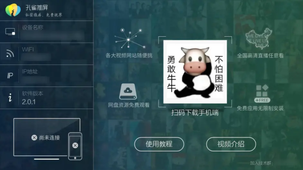 缺点:UI界面非常老旧,并且必须扫码下载他们的软件才能投屏,右下角还有引流QQ群,满屏的广告观感非常差。