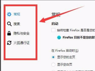 4、点击其中的常规,并找到右侧的Firefox显示更新历史,如图所示。