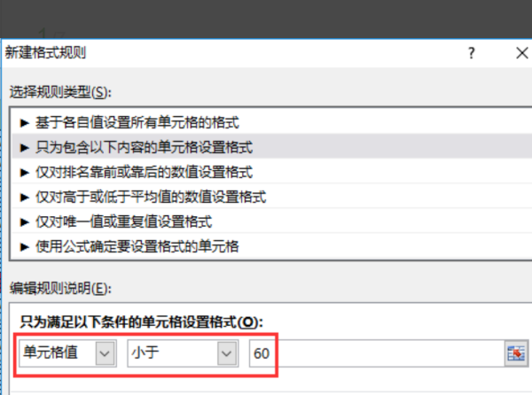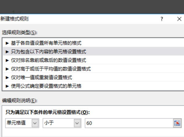 4、单击下方的“格式”按钮,来为这些60分以下的单元格设置格式。