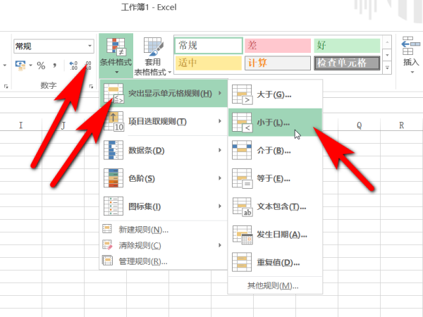 请问在excel中,如何设置小于某数值的所有数颜色为红?